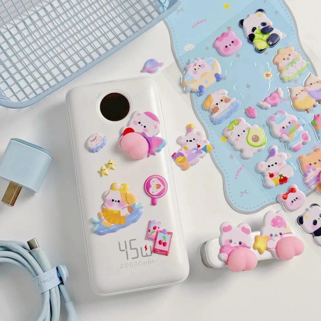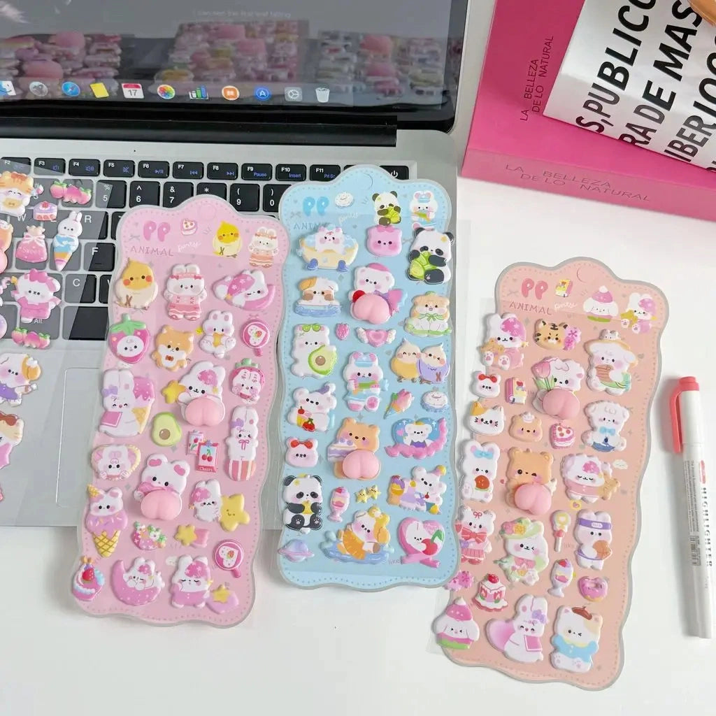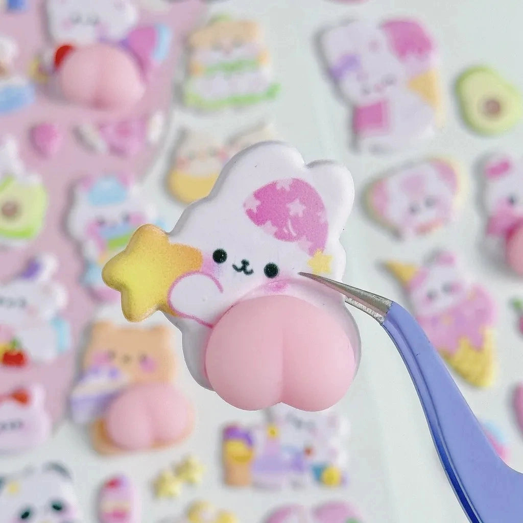 【4枚セット】ボンボンドロップシールおしりぷにぷにゆるかわどうぶつの癒し系3Dシール【再入荷なし】